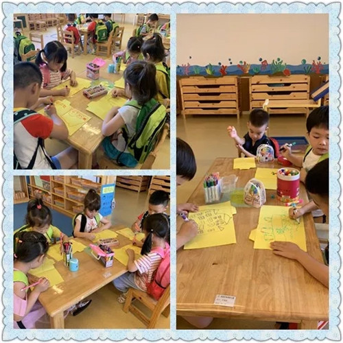 中班的哥哥姐姐們也不遑多讓,他們筆下,有了更多想法,有了更多顏色和圖案。