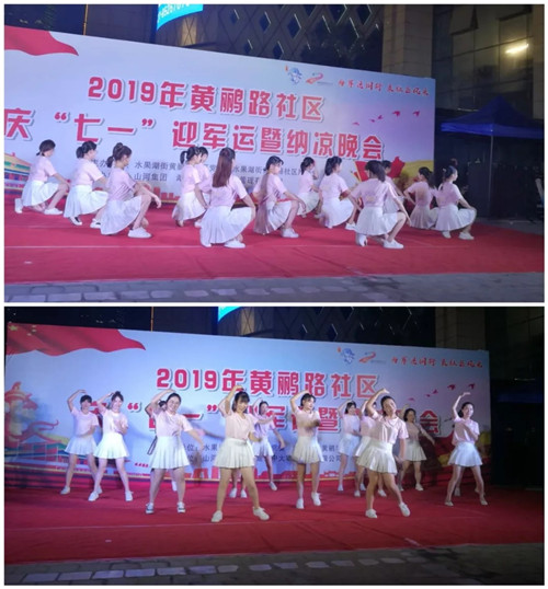 原來,她們去武昌黃鸝路社區(qū)參加“慶七一?迎軍運”的納涼晚會啦!