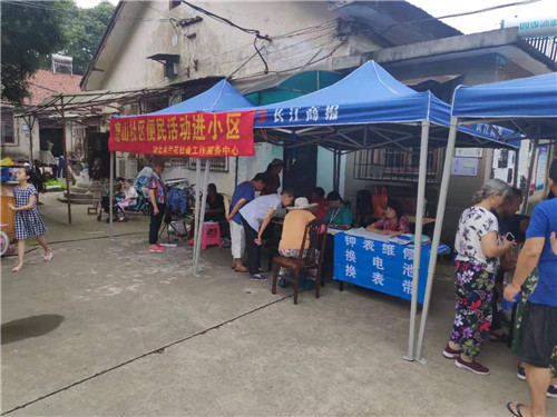 7月9日湖北木蘭花社會(huì)工作服務(wù)中心工作人員早早的就來(lái)到了磨山社區(qū)準(zhǔn)備今天上午的便民活動(dòng)。磨山社區(qū)的工作人員與木蘭花社工,魯紅團(tuán)隊(duì)的志愿者們一起布置場(chǎng)地,擺放桌椅,掛上橫幅,搭建雨棚靜候居民的到來(lái)。