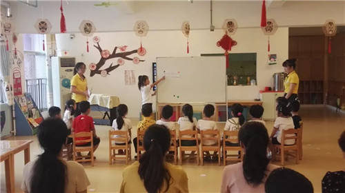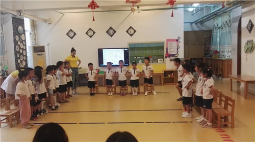 中一班的小朋友也不甘示弱,用幾首兒歌熱身之后,正式投入到了課堂之中。