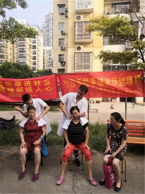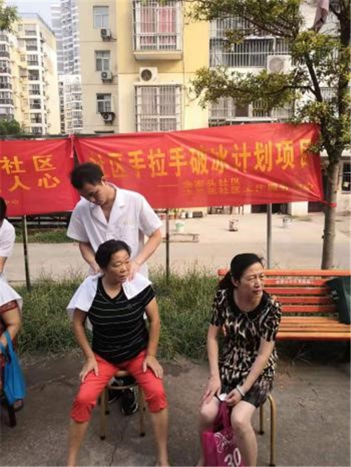 8月22日上午8點,余家頭社區(qū)舉辦的免費頸肩按摩的公益活動開始了。