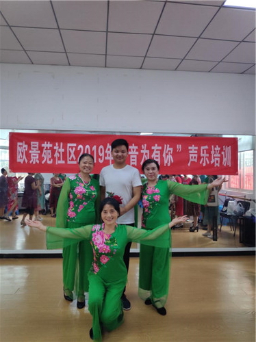 8月28日上午9點,歐景苑社區(qū)開辦的“音為有你”聲樂培訓(xùn)班迎來了最后一節(jié)課,通過學(xué)員們的成果匯報演出來展示這段時間學(xué)習(xí)的效果。