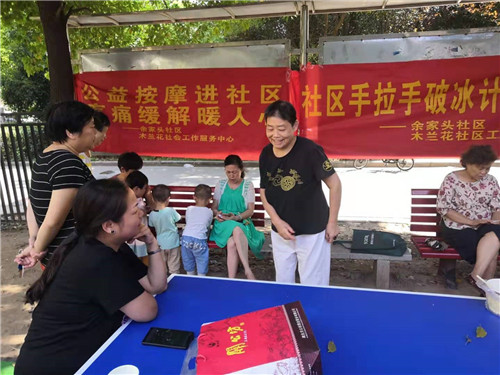 9月3日上午8點(diǎn),余家頭社區(qū)舉辦免費(fèi)頸肩按摩的公益活動(dòng)開始了。