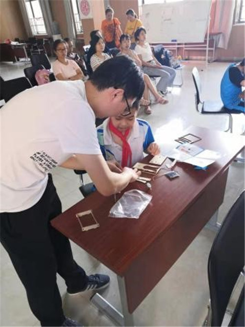 首先,孩子們在家長的帶領(lǐng)下在居委會活動室集合。在活動開始前,為了活躍氣氛,木蘭花的社工馮金運(yùn)與孩子們玩起了一個個小游戲,惹得孩子哈哈大笑。此次活由機(jī)器人制作的湯老師帶領(lǐng)孩子們制作太陽能風(fēng)扇?;顒娱_始后,湯老師先給孩子們看了一個與太陽能風(fēng)扇有關(guān)的短片,讓孩子們了解一下什么是太陽能風(fēng)扇,接著,孩子們開始根據(jù)湯老師的演示與指導(dǎo)拼裝太陽能風(fēng)扇,雖然制作它不容易,但是孩子們還是完成的自己的作品。