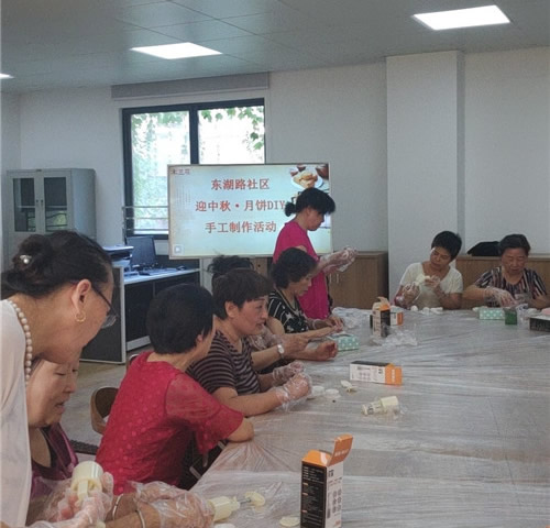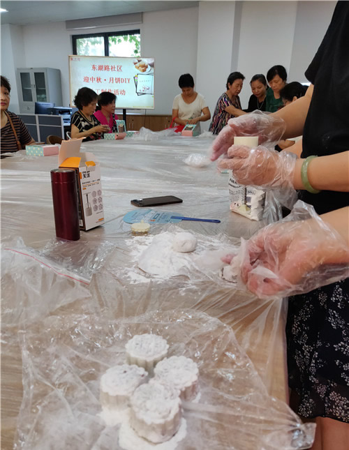 為響應(yīng)國(guó)家傳統(tǒng)節(jié)日的號(hào)召,9月9日下午3點(diǎn),北環(huán)路社區(qū)居委會(huì)2樓開(kāi)展手工做月餅的活動(dòng)。