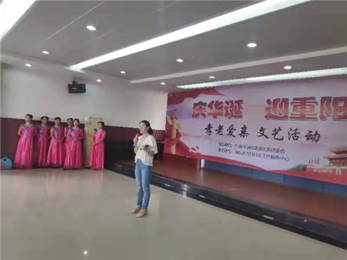 “為隆重紀(jì)念新中國成立70周年華誕,在重陽節(jié)即將來臨之際,謳歌偉大祖國所取得的輝煌成就,我們?cè)谝黄鸷霌P(yáng)孝老愛親傳統(tǒng)美德,共抒愛國情懷,今天我們建強(qiáng)社區(qū)特開展“慶華誕迎重陽孝老愛親”文藝活動(dòng),讓我們可以聚在一起歡度國慶,迎接重陽?!被顒?dòng)開始前,社區(qū)劉主任現(xiàn)場(chǎng)致辭,祝福祖國繁榮昌盛,祝福大家重陽節(jié)闔家團(tuán)圓。