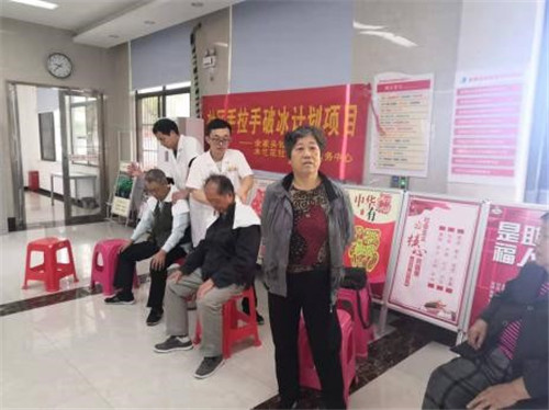 10月15日上午8點(diǎn)30,余家頭社區(qū)舉辦免費(fèi)頸肩按摩的公益活動開始了。