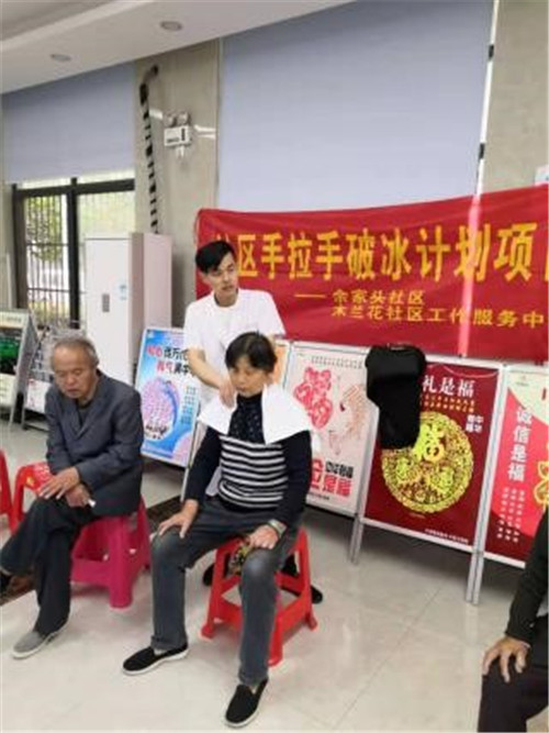 10月22日上午8點30,余家頭社區(qū)舉辦的免費頸肩按摩最后一場公益活動開始了。