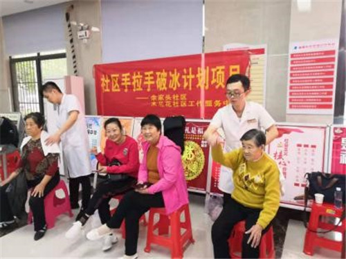 木蘭花社工與臻品足道的兩位專業(yè)按摩醫(yī)師早早的來到社區(qū)居委會,布置場地,準(zhǔn)備茶水,等待居民們的到來。居民們得到消息后紛紛來到居委會,體驗專業(yè)醫(yī)師的按摩理療。木蘭花社工為等候的居民們端茶遞水,聊著家常,拉近關(guān)系,了解居民需求。
