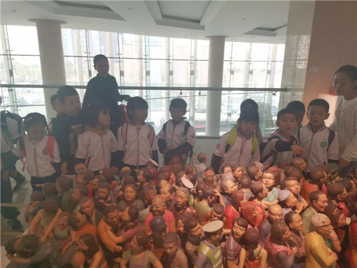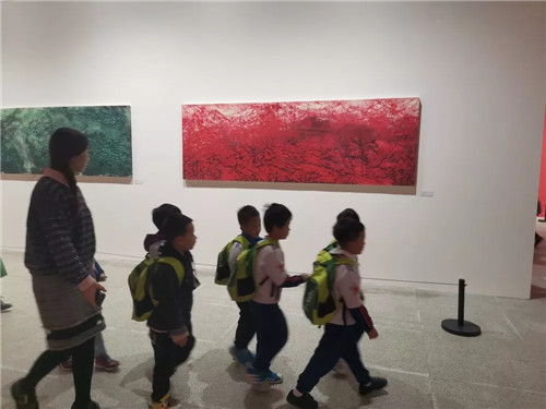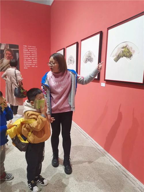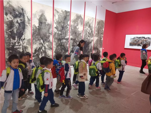 “遠(yuǎn)上寒山石徑斜,白云生處有人家。停車坐愛楓林晚,霜葉紅于二月花?!卑橹宕嗟恼b讀聲,大一班、大二班的小朋友們?nèi)ッ佬g(shù)館啦!