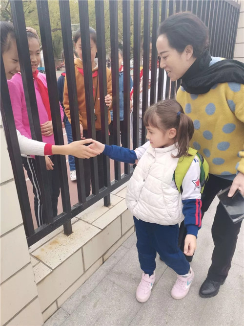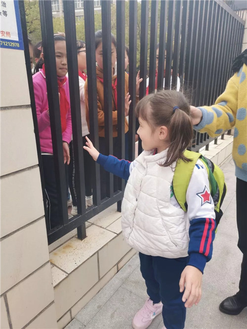 路上正好有所小學(xué)的大哥哥大姐姐們?cè)谏象w育課,見到小朋友們都圍過來打招呼。不知道什么時(shí)候,我們才能上小學(xué)呢?