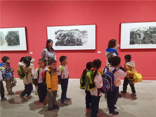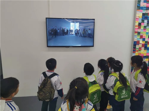 哇,美術(shù)館也太大了吧!這些作品也太漂亮了吧!有山有水,有花有草,還有神奇的二維碼,每個(gè)二維碼掃一掃,都會(huì)出現(xiàn)一個(gè)小故事哦,小朋友們聽老師講的可認(rèn)真了。