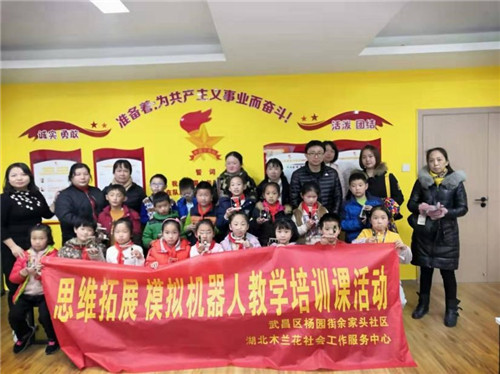 12月20日下午3點半,余家頭社區(qū)攜同湖北木蘭花社會工作服務(wù)中心在社區(qū)居委會四樓活動室開展了第七場“思維開拓模擬機器人制作”活動。余家頭社區(qū)邀請了轄區(qū)內(nèi)近30位孩子來參加了此次活動。