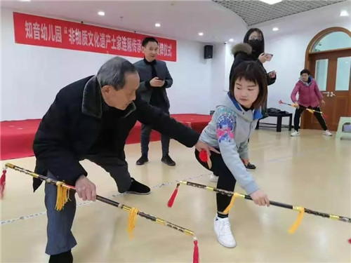 今年,知音幼兒園正式將土家連廂引進(jìn)日常教學(xué),并成為“非物質(zhì)文化遺產(chǎn)土家連廂傳承基地”。經(jīng)過一個(gè)月的排練磨合,連廂表演第一次正式亮相,老師和幼兒一起給大家?guī)肀硌荨哆B廂情》,令人眼前一亮。