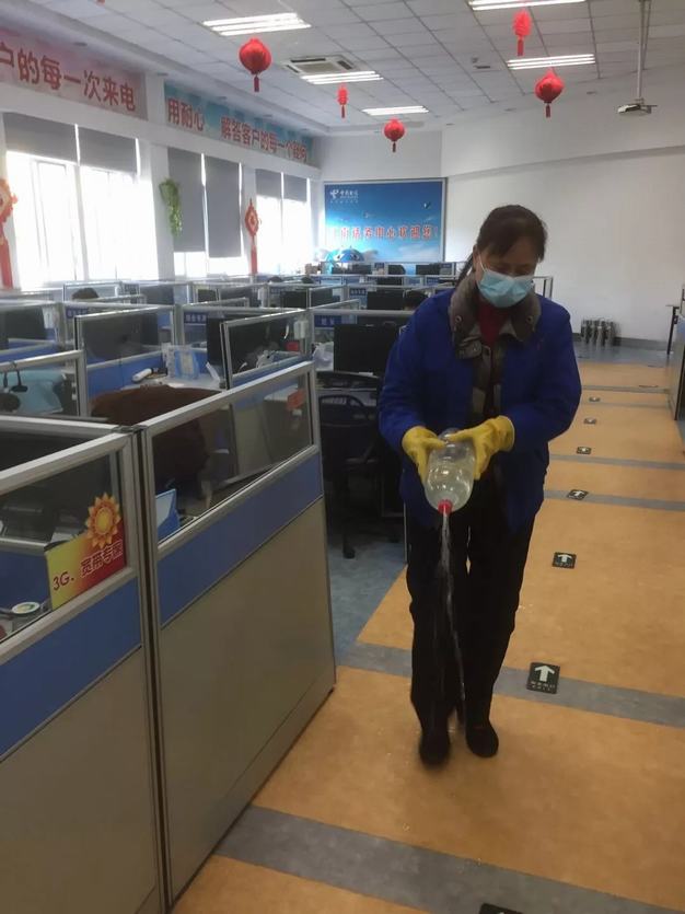 近20名員工主動留守,克服困難,為湖北電信近百名“10000號”工作人員提供衛(wèi)生消毒和保潔服務(wù)。