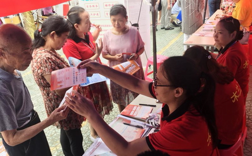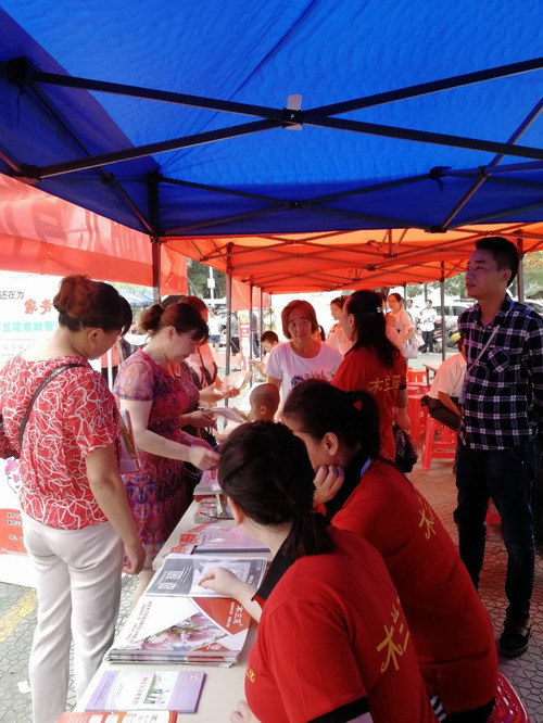 湖北木蘭花家政服務(wù)股份有限公司執(zhí)行總經(jīng)理李金保及員工在紅安招聘現(xiàn)場(chǎng)合影