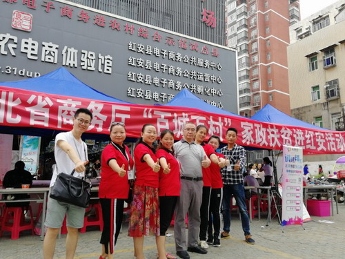 與商務(wù)廳、省家協(xié)、紅安縣領(lǐng)導(dǎo)在招聘現(xiàn)場(chǎng)合影
