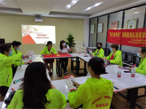 為了能夠及時發(fā)現(xiàn)和化解轄區(qū)鄰里之間的矛盾與糾紛,更快、更好的解決問題,防止矛盾激化,余家頭社區(qū)居委會于2020年8月25日攜手湖北木蘭花社會工作服務中心組織開展“我們是鄰居”調(diào)解服務隊技能培訓交流會,讓剛建成的“乘風破浪”調(diào)解服務隊學習調(diào)節(jié)技巧,交流經(jīng)驗。