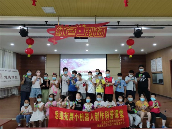 8月28日下午,余家頭社區(qū)攜同湖北木蘭花社會工作服務(wù)中心在社區(qū)居委會四樓活動室開展了一場“思維拓展小機器人制作科普課堂”活動。余家頭社區(qū)邀請了轄區(qū)內(nèi)近30位孩子來參加了此次活動。