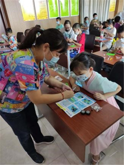 活動(dòng)開(kāi)始前,孩子們?cè)诩议L(zhǎng)的帶領(lǐng)下陸續(xù)在4樓活動(dòng)室集合,由于疫情原因,所以參與活動(dòng)的人員都要求帶上了口罩,測(cè)量體溫。此次活由機(jī)器人制作的湯老師帶領(lǐng)孩子們制作太陽(yáng)能混合動(dòng)力車(chē)?;顒?dòng)開(kāi)始后,湯老師先給孩子們展示了一下太陽(yáng)能混合動(dòng)力車(chē)的制作好的成品,并介紹了太陽(yáng)能混合動(dòng)力車(chē)的工作原理,讓孩子們了解一下什么是太陽(yáng)能混合動(dòng)力車(chē)。隨后,孩子們開(kāi)始根據(jù)湯老師的演示與指導(dǎo)拼裝太陽(yáng)能混合動(dòng)力車(chē),雖然制作它不容易,但是孩子們還是努力完成了自己的作品。