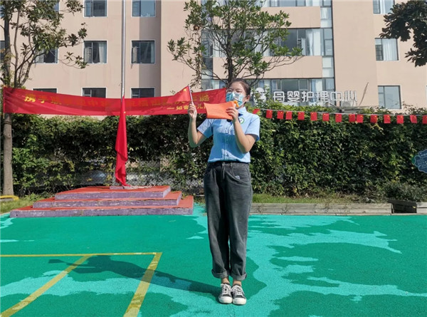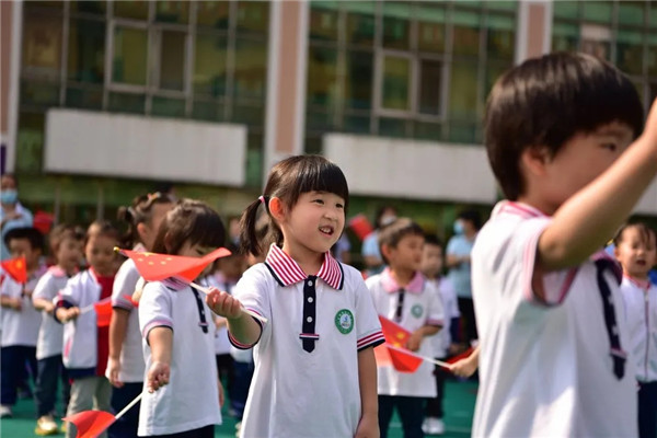 歌聲頌祖國,童心繪夢想。升旗儀式結(jié)束后,全體師生齊唱《紅星閃閃》,稚嫩的童聲,道不盡對祖國的熱愛;每一次舞動的小紅旗,映襯著身為中國人的自豪。
