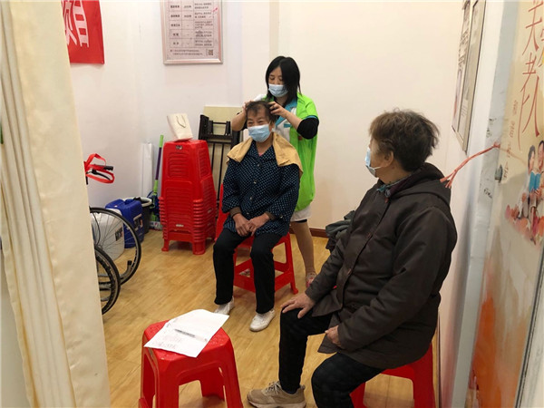 在義務(wù)理發(fā)區(qū)和中醫(yī)按摩區(qū),居民老年人們按照秩序排著隊(duì),志愿者們一一為他們修整著頭發(fā),感受著中醫(yī)理療按摩,社區(qū)的老年朋友們很開(kāi)心,有幾位老年人說(shuō)道:“這位技師按摩的手法很好,緩解了身體的不適,我們很開(kāi)心……”,居民肖爺爺開(kāi)心的拉著工作人員的手說(shuō):“這次活動(dòng)是我參加過(guò)服務(wù)最全的便民服務(wù),幫助我們老年人解決了很多的生活問(wèn)題,感謝社區(qū),感謝武重社區(qū)木蘭花居家養(yǎng)老服務(wù)中心的工作人員。”