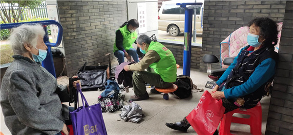 活動(dòng)當(dāng)天,便民服務(wù)的志愿者們?cè)缭缇蛠?lái)到楚漢新居的活動(dòng)場(chǎng)地進(jìn)行各項(xiàng)活動(dòng)準(zhǔn)備工作。測(cè)量血壓血糖、口腔檢查、眼科、中醫(yī)問(wèn)診、中醫(yī)按摩、修傘、修鞋、配鑰匙、義務(wù)理發(fā)、手機(jī)貼膜……等等十多個(gè)便民義診服務(wù)項(xiàng)目,為轄區(qū)內(nèi)的老年人切切實(shí)實(shí)提供了來(lái)到家門(mén)口的便民服務(wù)。志愿者們耐心地解答居民們提出的各種問(wèn)題,義務(wù)理發(fā)志愿者用嫻熟的技術(shù),服務(wù)社區(qū)老年朋友們,社區(qū)居民們臉上都露出了滿(mǎn)意的笑容。