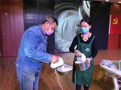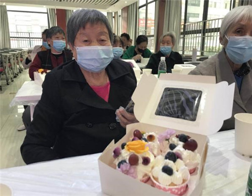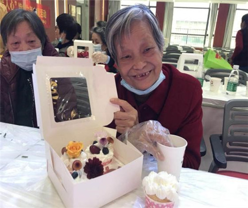 演出結(jié)束后,社區(qū)老年人展開(kāi)了網(wǎng)紅手作烘焙課程-花彩紙杯蛋糕?;顒?dòng)現(xiàn)場(chǎng),社區(qū)老年人們由烘焙桂老師教授進(jìn)行蛋糕基底的制作,老人們看得非常認(rèn)真,并紛紛參與現(xiàn)場(chǎng)烘焙互動(dòng)。再教授完基底制作后,桂老師又指導(dǎo)著現(xiàn)場(chǎng)的爺爺奶奶們進(jìn)行打發(fā)奶油和蛋糕裱花的制作過(guò)程。重陽(yáng)節(jié)有著賞菊的習(xí)俗,在中國(guó)古俗中,菊花象征長(zhǎng)壽,菊是長(zhǎng)壽之花。我們采用新鮮的菊花作為裝飾材料,指導(dǎo)老人們裝裱著屬于自己的長(zhǎng)壽蛋糕上,欣賞著自己的作品,社區(qū)老年人們的臉上洋溢著快樂(lè)的笑容。