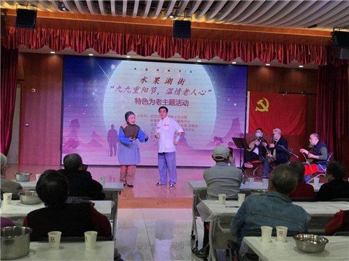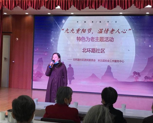 活動(dòng)開(kāi)始,首先由水果湖街道公服辦胡亭山站長(zhǎng)和社區(qū)書(shū)記黃海燕書(shū)記致辭,并為到場(chǎng)的所有老人送上了真摯的節(jié)日祝福。其中北環(huán)路社區(qū)黃書(shū)記說(shuō)道:“希望在以后的生活中帶給咱們社區(qū)的老年朋友們更多的關(guān)懷和幫助……”。
