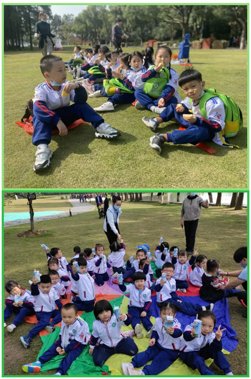 玩累了,畫累了,就坐下來休息,分享帶來的美味餐點,然后收拾好自己的物品,開始返程。值得表揚的是,小朋友們都各自清理好自己的垃圾,不隨地亂扔,做文明小公民。