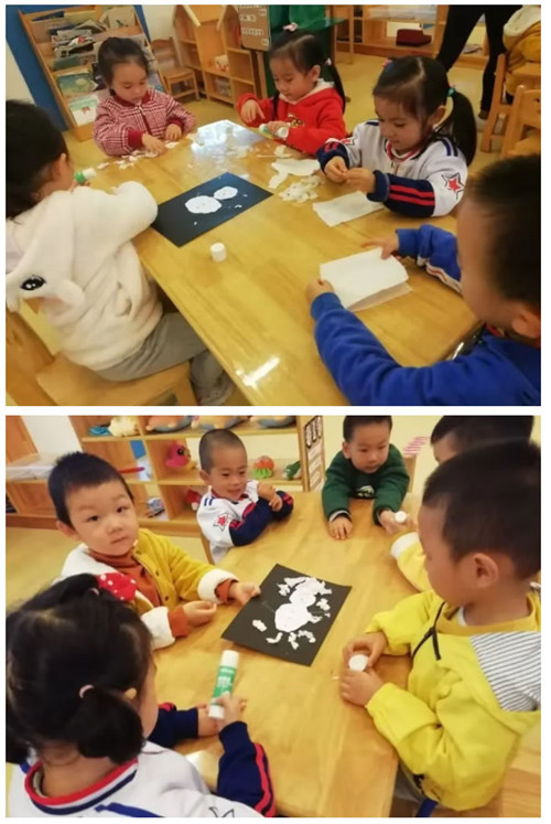 (1)用白色A4紙撕出一大一小兩個(gè)圓和雪人帽子上的小絨球。