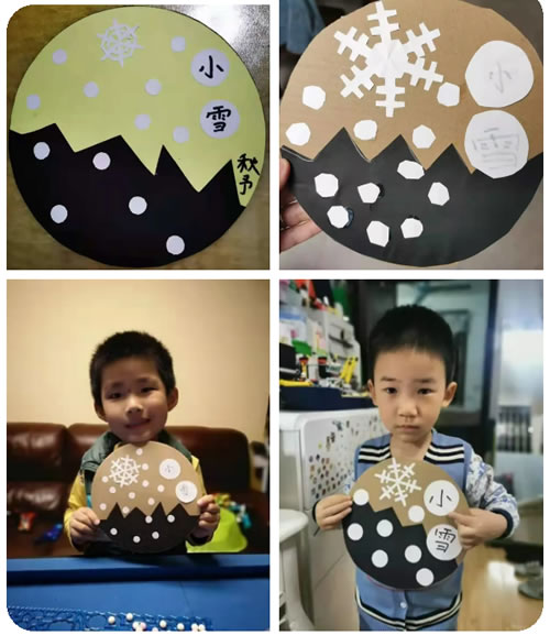 ?。?)用黑色記號(hào)筆寫出主題“小雪”并裝飾作品。