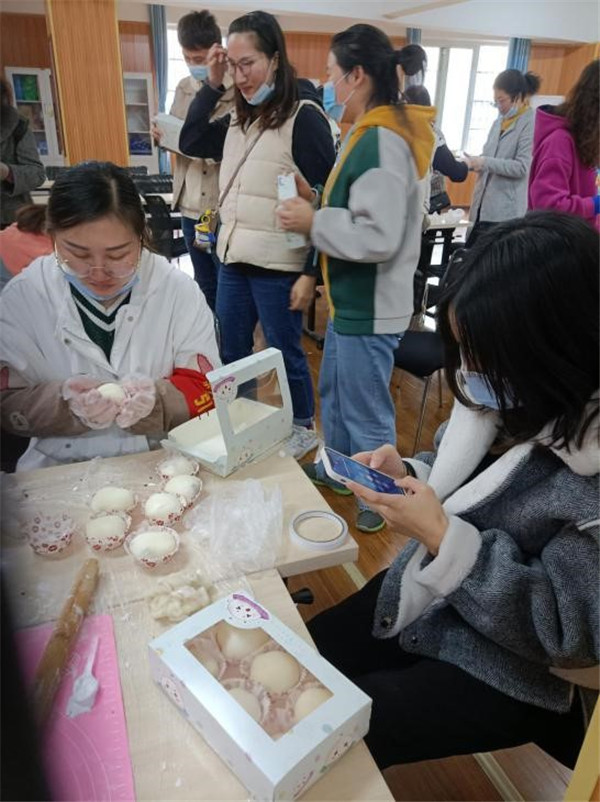學(xué)員們親自動(dòng)手,制作過程中相互切磋步驟和方法是否正確。期間,大家還紛紛拿起手機(jī)拍下自己的勞動(dòng)成果,忙著裝盒把親手制作的甜品帶回家,準(zhǔn)備與家人一起分享。