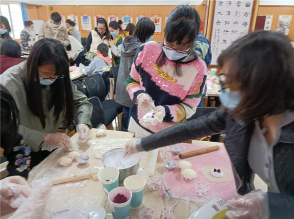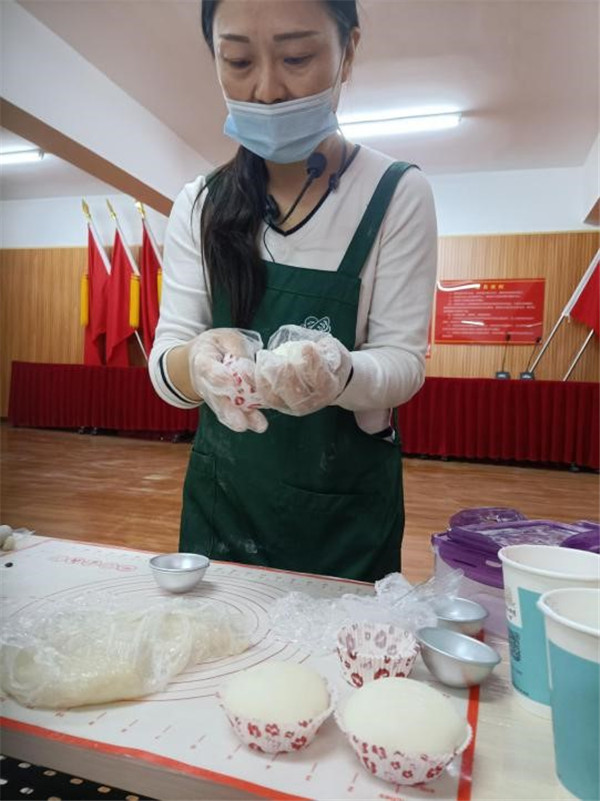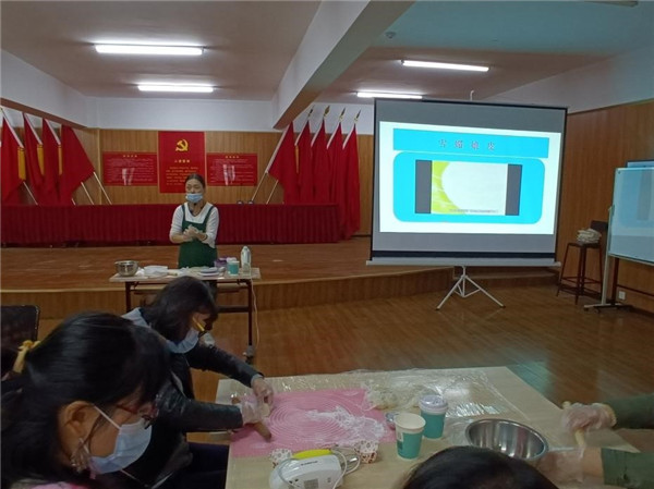 培訓(xùn)班在港東名居社區(qū)會議室開展,分為上下兩場,分別學(xué)習(xí)手工制作西式甜點(diǎn)“雪媚娘”及植物香熏蠟片。