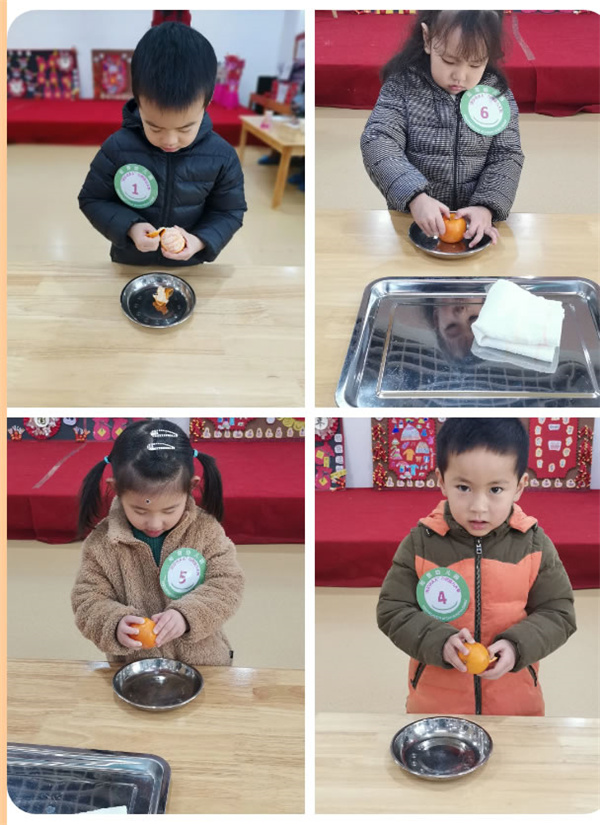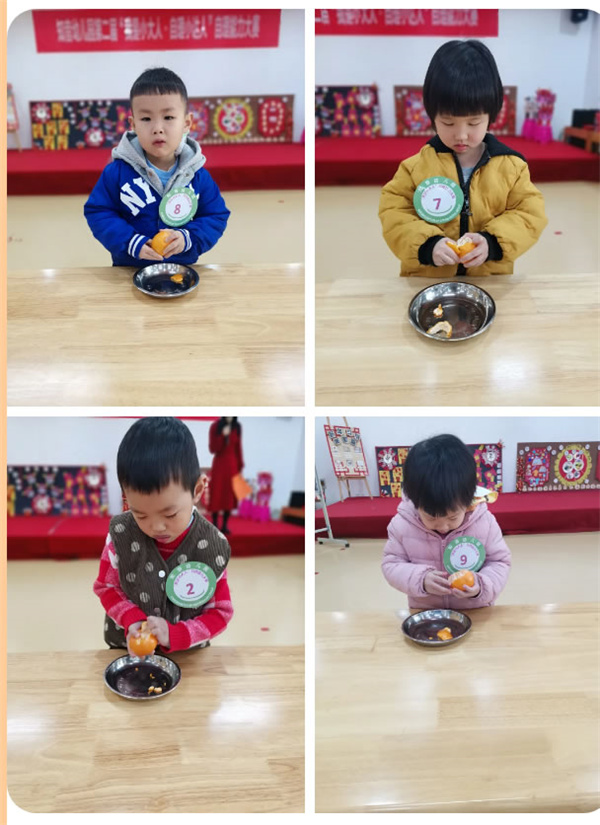比賽正式開始,早早準(zhǔn)備好的小選手們摩拳擦掌,躍躍欲試。首先進(jìn)行的是小班組比賽,比賽項(xiàng)目為:疊方巾;剝好桔子并將桔子皮放入渣盤;脫鞋、地墊來回爬、穿鞋(無鞋帶)。隨著主持人一聲令下,小朋友們立即行動(dòng)起來,動(dòng)作迅速,有條有理,現(xiàn)場等待比賽的哥哥姐姐們?yōu)樗麄兗佑椭???吹叫∨笥褌兺瓿杀荣惡髣倮谋砬椋蠋焸円矠樗麄兏械津湴痢?br/>