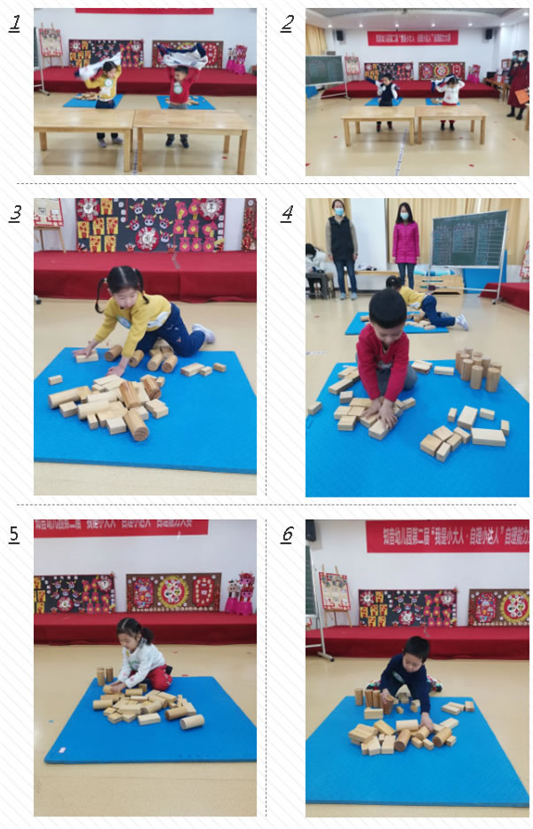 緊接著是中班組的比賽,比賽內(nèi)容為:穿、脫、疊放好秋季園服;分積木。中班組的小朋友一上場就讓比賽氛圍瞬間緊張起來,比賽還沒開始就已經(jīng)做好準(zhǔn)備。賽場上的小朋友一個(gè)個(gè)快速穿脫、疊好園服后迅速投入到積木分類中。激烈的比賽牽動(dòng)著觀眾的心,看他們完成比賽后神氣的小表情仿佛在說:“看!我是最棒的!”