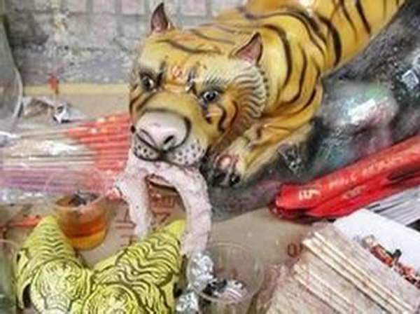 民間傳說,白虎會在這一天出來搬弄是非,所以大家紛紛向白虎獻祭,以求自保。
