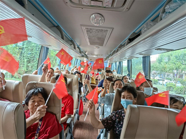 早上七點(diǎn)半,國棉社區(qū)的黨員們與木蘭花社工一起將大家的能量包(水和干糧)運(yùn)上大巴。八點(diǎn)半大巴車準(zhǔn)時出發(fā),出發(fā)啟動以后,每個人發(fā)了一面小黨旗。隨后就開始了有關(guān)黨建的有獎問答,現(xiàn)場氣氛特別活躍。一路上大家唱著《沒有共產(chǎn)黨就沒有新中國》與《團(tuán)結(jié)就是力量》到達(dá)了目的地。