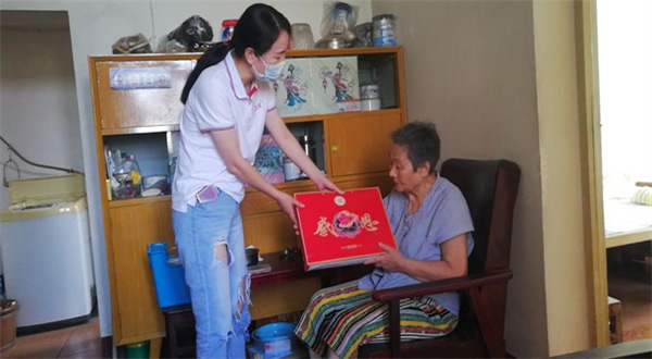 為了讓不能來到活動現(xiàn)場的特殊困難群體也感受到中秋節(jié)日氛圍,享受到社區(qū)的關(guān)愛,活動結(jié)束后我們還安排了上門慰問,為困難群體送去節(jié)日祝福,老人們對此表示十分感動,張奶奶說:“社區(qū)每次都記著照顧我,太感謝你們啦!”90多歲的王奶奶收到我們送過去的月餅和鮮花,主動抱起鮮花要求我們先給她拍張照,感謝社區(qū)對老年群體的關(guān)愛。