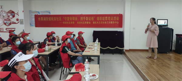 為進(jìn)一步為加強(qiáng)“五安”志愿者機(jī)動(dòng)服務(wù)隊(duì)的服務(wù)技能,提高志愿力量參與突發(fā)事件處置的能力水平,6月11日和6月14日,由武漢市水果湖街道機(jī)安社區(qū)黨委,水果湖街道機(jī)安社區(qū)居委攜手湖北木蘭花社會(huì)工作服務(wù)中心開展了多場(chǎng)“守望到幫扶,攜手新征程”組織培育培訓(xùn)活動(dòng)。