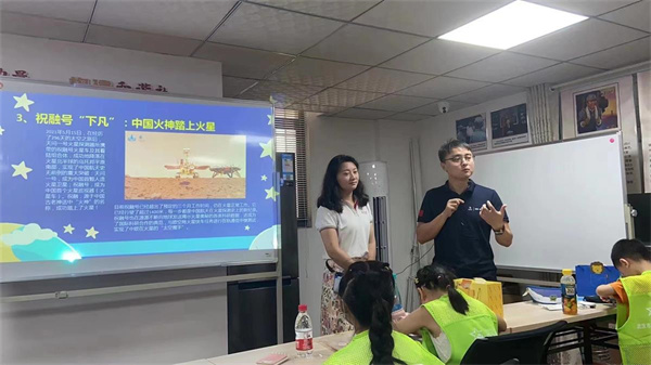 課堂上,青少年們積極參與互動,提出自己對航天事件的疑問,并講述自己對航天未來的設(shè)想。有的孩子問:“熊老師,我們?yōu)槭裁匆皆履??”熊彥說探月對我國乃至全人類,在農(nóng)業(yè)、科技、環(huán)保和新能源上有重要意義。青少年們意猶未盡地思考著熊彥講述的知識,發(fā)出許多新奇有趣的問題,展現(xiàn)了大家對航天知識的渴望和熱情。