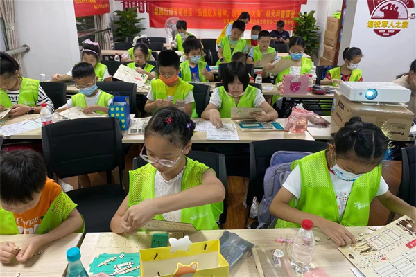在老師的帶領(lǐng)下,青少年們動手制作長征3號乙型火箭模型。大家非常期望能自己做好這個火箭模型,拿回家向爸爸媽媽展示這節(jié)課的學(xué)習(xí)成果。很快,有的人做好了,就主動幫其他孩子做模型。在大家共同努力、互幫互助和堅持下,一個個精致的火箭模型展現(xiàn)在青少年的手里。