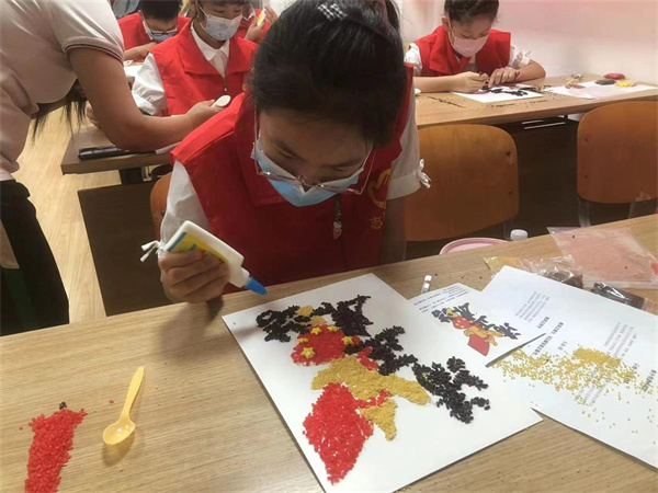 活動(dòng)中,青少年們首先誦讀與廉潔有關(guān)的詩詞,在品味《墨竹圖題詩》中認(rèn)識(shí)清廉,又在《南風(fēng)歌》中了解清廉。老師們通過傳統(tǒng)文化教育,對(duì)青少年們進(jìn)行“反腐敗,倡廉潔”的教育宣傳,引導(dǎo)他們從小樹立正確的價(jià)值觀。在繪畫制作環(huán)節(jié),大家用五谷雜糧繪制出“清正廉潔”的精美作品。在老師帶領(lǐng)下,孩子們一邊涂膠,一邊把彩色雜糧鋪撒在底板上,經(jīng)過細(xì)心的操作,一幅幅精美的清廉作品就制作完成了。畫上有華表、五星紅旗圖案,還有“清正廉潔”四個(gè)字。老師幫助大家把畫框裱在相框里,孩子們都開心極了。老師又給孩子們發(fā)放了剪紙,上面有蓮花和“廉”字。