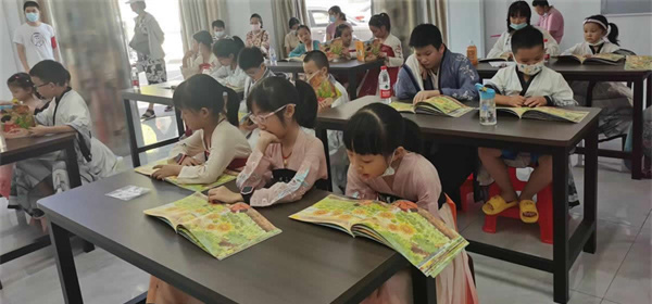 參加此次活動的青少年提前穿搭好精致的漢服,為此次活動帶來古風氛圍。在老師生動有趣的講述下,大家學習了《立秋》繪本內容,知道“啃秋瓜”“貼秋膘”和“摸秋”這些有趣的習俗?;顒蝇F(xiàn)場,社區(qū)工作人員還為青少年提供了美味的西瓜,一起體驗“啃秋瓜”,來消暑解熱和祈求美好祝福。
