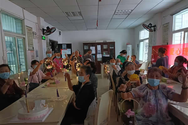活動首先以“有獎競猜”互動游戲的形式開展,問答內(nèi)容包括重陽節(jié)傳統(tǒng)文化、健康生活知識、反詐宣傳等。隨后,在工作人員的幫助下,大家又動手制作了非常漂亮的兔子燈籠。社區(qū)志愿者、木蘭花居家養(yǎng)老中心工作人員為老人們準(zhǔn)備了生日蛋糕,給壽星們戴上了生日帽,和壽星們一起吹蠟燭,切生日蛋糕、齊唱生日歌。老人們開心地吹滅蠟燭,并許下了美好的心愿。