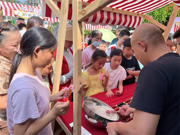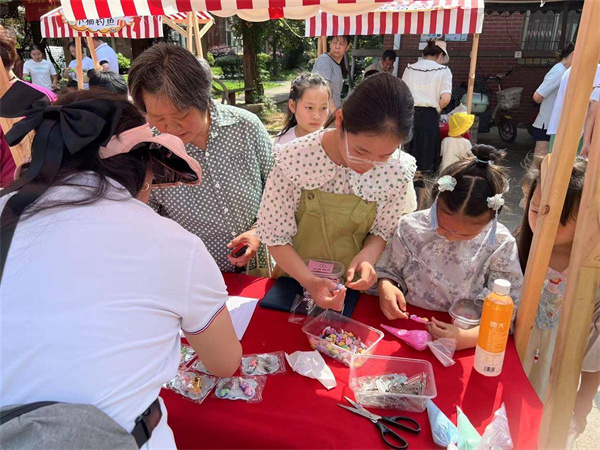 活動(dòng)中,社工們?yōu)樾∨笥言O(shè)置了趣味套圈、小貓釣魚(yú)、奶油發(fā)卡、陶瓷娃娃、糖畫(huà)糖葫蘆等互動(dòng)項(xiàng)目,其中最受歡迎的項(xiàng)目是制作奶油發(fā)卡。在老師的指導(dǎo)下,小朋友們發(fā)揮自己的想象力和創(chuàng)造力,制作自己心儀的發(fā)卡,他們的臉上洋溢著幸福的笑容。非遺項(xiàng)目糖畫(huà)和糖葫蘆吸引了很多小朋友,他們圍觀老師的制作過(guò)程,通過(guò)試吃來(lái)體驗(yàn)節(jié)日的快樂(lè)。