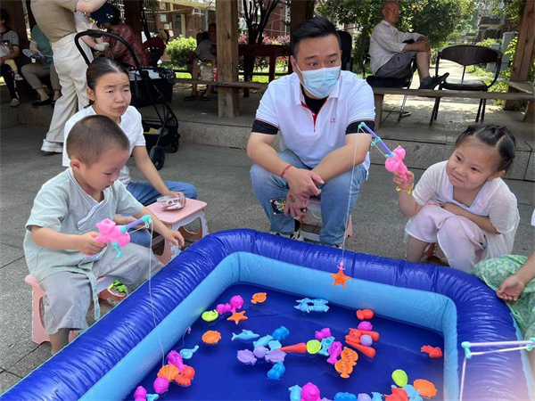 小朋友們也非常喜歡小貓釣魚(yú)和套圈闖關(guān)游戲,這兩個(gè)活動(dòng)攤位上,參與游戲的孩子絡(luò)繹不絕。陪同的家長(zhǎng)也享受到了手機(jī)貼膜、測(cè)量血壓等服務(wù)?;顒?dòng)的形式豐富多彩,在關(guān)心關(guān)愛(ài)青少年健康成長(zhǎng)的同時(shí),加深了孩子們對(duì)傳統(tǒng)文化的理解,拓寬了他們的視野,對(duì)于非遺保護(hù)和傳承也起到了積極作用。