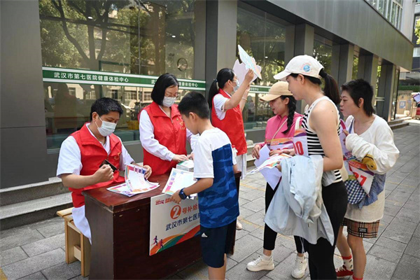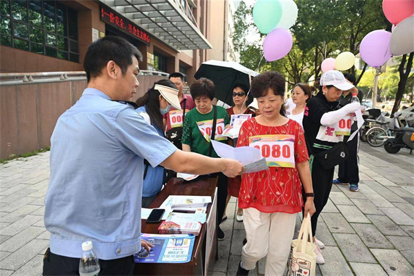 值得一提的是,這7處“打卡點(diǎn)”“加油站”均由社區(qū)招募轄區(qū)單位、企業(yè)的黨員組成。他們身著單位制服提供專業(yè)服務(wù),為參賽選手加油助威,56人組成了一道紅色風(fēng)景線。每個(gè)站點(diǎn)不僅設(shè)置了唱紅歌、猜歌名、你接我唱小游戲等趣味環(huán)節(jié),還根據(jù)行業(yè)特長(zhǎng)進(jìn)行宣傳,如中南派出所反詐補(bǔ)給點(diǎn)、武漢市第七醫(yī)院紅十字博愛(ài)補(bǔ)給點(diǎn)、武珞律師事務(wù)所普法補(bǔ)給點(diǎn)……他們用行動(dòng)將共同締造的理念貫徹到社區(qū)治理服務(wù)體系之中。
