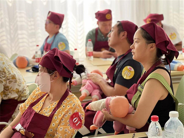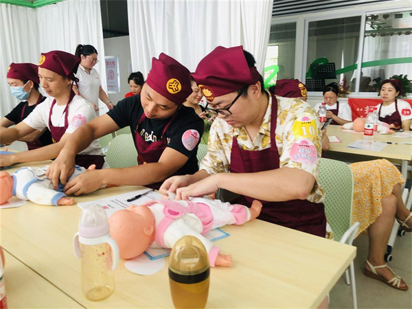 “奶粉沖好之后可能沒有完全溶解,此時切記不要去拼命晃奶瓶,可以放在手心轉(zhuǎn)動讓奶粉慢慢溶解……”國家高級育嬰講師劉麗說。兩個小時的課程,老師從育嬰技能、家政收納等方面對居民展開基礎(chǔ)理論知識培訓(xùn)?!拔覀兗磳⒁有律俏覀兏静恢酪趺醋o(hù)理小孩,今天來參加活動,我們有了基礎(chǔ)經(jīng)驗(yàn),到時候?qū)殞毘錾缶筒粫肿銦o措了?!币粚π率职謰屨f。