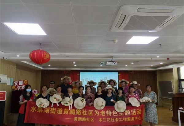 隨后,社工帶著居民們開展手工活動(dòng),一起動(dòng)手制作花團(tuán)錦簇的遮陽帽,搭配、擺放、粘黏……居民們認(rèn)真地制作著。待到作品完成,大家紛紛拉著鄰居們一起拍照,臉上洋溢著幸福的笑容?!渡崭琛讽懫?,社工拿出準(zhǔn)備好的蛋糕,邀請壽星們許下心中的愿望,蛋糕的香甜和養(yǎng)老中心內(nèi)歡快的笑聲交融,繪就成一幅幸福溫馨的美好畫卷。